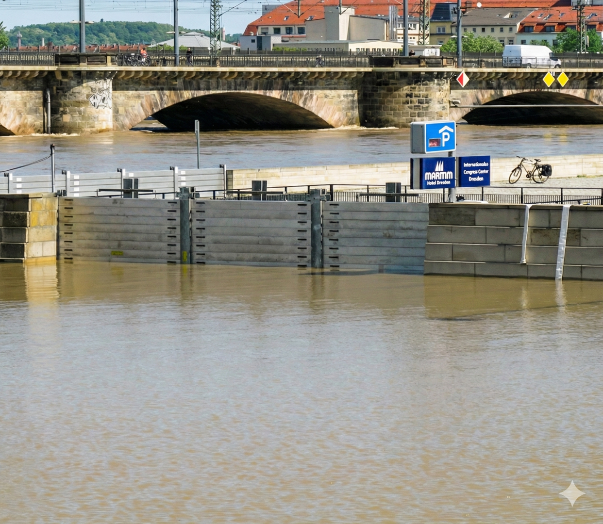 Das System ist für extreme Hochwasserlagen ausgelegt und schützt zuverlässig auch bei außergewöhnlichen Stauhöhen.